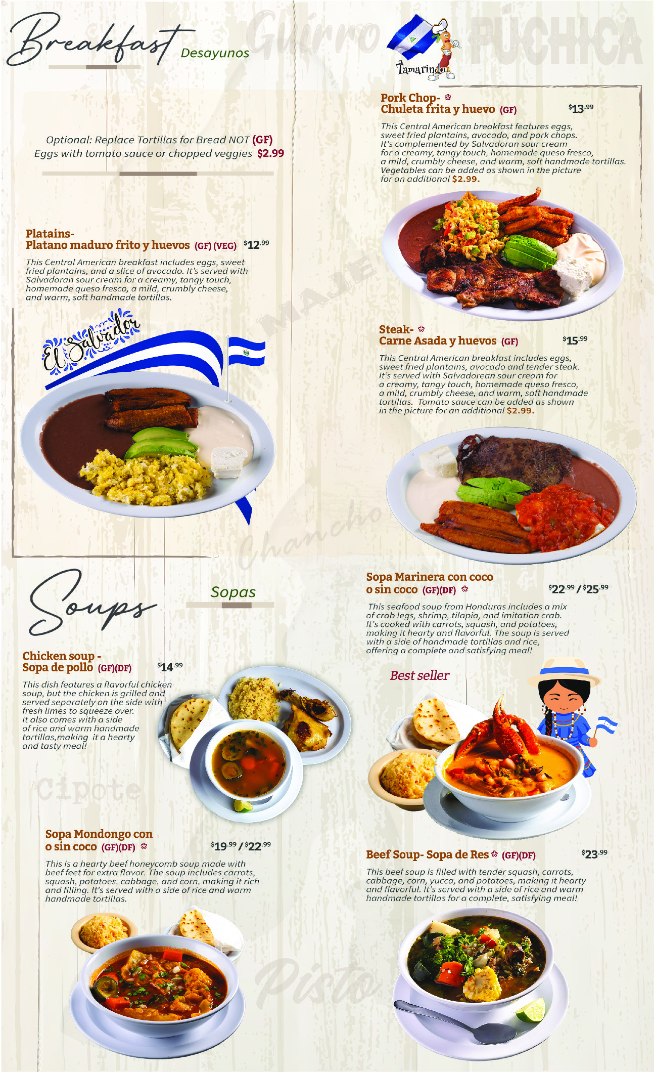 Desayuno/Breakfast Chuleta (Pork chops) 12.25